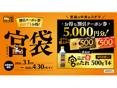 ステーキ宮にて2026年3月1日(日)より販売 コロワイドグループの株式会社アトム(本社:神奈川県横浜市、代表取締役社長:植田剛史)が展開するステーキ宮では、お得なクーポン券と宮のたれがセット...