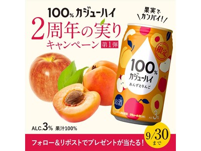 新商品「あんずとりんご」で祝う、2周年にカンパイ!『果実100%の、贅沢。』100%カジューハイ 2周年SNSキャンペーン第1弾がスタート