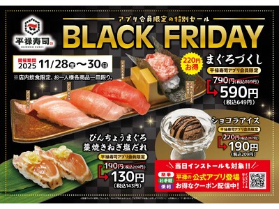 「平禄寿司」BLACK FRIDAY 11/28(金) ~ 11/30(日)「アプリ会員様限定」特別セール!