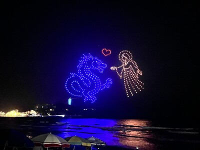 8月19日(火)に、江の島の伝説をもとにしたドローンショーを初開催 来場者に新たな文化的エンターテインメントを提供し約3.5万人から大歓声