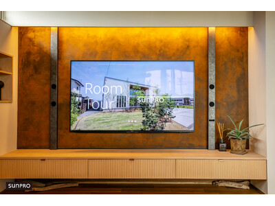 ~ 住宅インテリア業界で注目の「2×4スピーカー」をGOOD LIFE フェアで初展示 ~ 壁掛けテレビと2×4スピーカーの組み合わせ写真 合同会社プレシュアリー(本社:長野県大町市、代表:横...