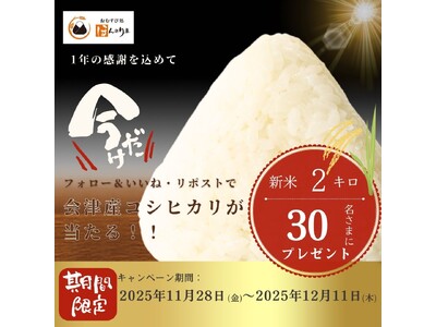 1年の感謝を込めて!おむすび処 ほんのり屋が"会津産コシヒカリ新米2kg"を30名さまにプレゼント
