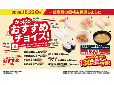 【かっぱ寿司】一部商品の価格を見直しました 人気の『ほたて』や『赤えび』は50円OFF、『9種の海鮮丼』は100円OFF!組み合わせて、もっと楽しく。もっとおトクに。"もう一皿"が叶う、うれしい価格へ
