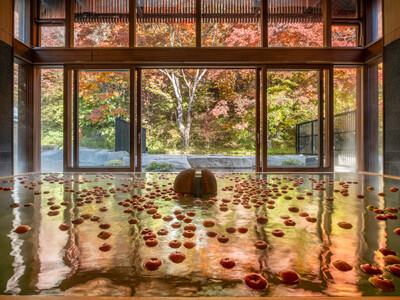 ~「いいりんごの日」から始まる、軽井沢星野エリアで体験するりんごづくしの休日~ トンボの湯の内湯に浮かぶりんご 自然と文化を愛する人々が集う場所「軽井沢星野エリア(以下、星野エリア)」は、20...
