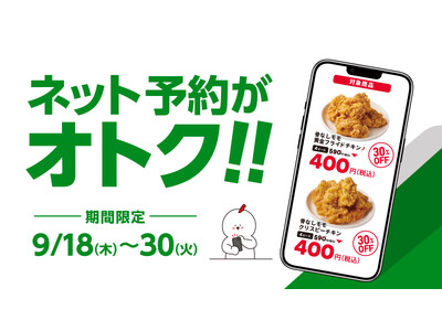 【bb.q オリーブチキン】ネット予約で待たずに受け取り!対象商品の「骨なしモモ黄金フライドチキン」「クリスピーチキン」(各4ピース)が、30%OFFの400円で楽しめるおトクなキャンペーン実施中!
