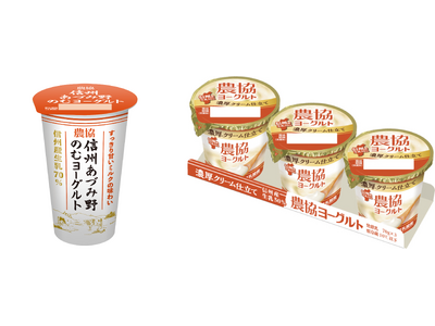 信州産生乳と国産生クリーム使用! 素材のおいしさを大切にした農協シリーズ新商品! 『農協 信州あづみ野のむヨーグルト』『農協ヨーグルト濃厚クリーム仕立て70g×3個』