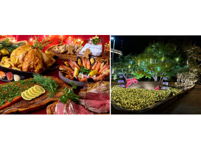 約50,000球のイルミネーションがホテル前庭を彩る、冬の絶景スポットに。 左:クリスマスディナービュッフェ、右:ホテル前庭のイルミネーション リーガロイヤルホテル大阪 ヴィニェット コレクシ...