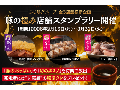 【ふじ嶋グループ】希少部位「豚のおっぱい」や「幻の黒ミノ」が解禁!全店舗横断企画『豚の極みスタンプラリー』を2026年2月16日(月)より開催。完走者には"門外不出"の秘伝タレを贈呈!