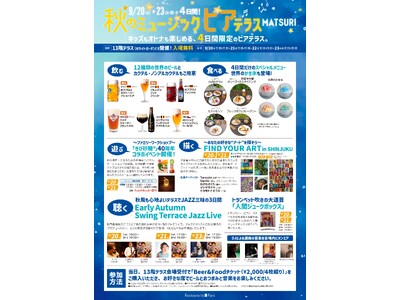 オトナもキッズも楽める! 秋のミュージックビアテラスMATSURI。9/20(土)~23(火・祝)の4日間、新宿高島屋13階テラスで開催。