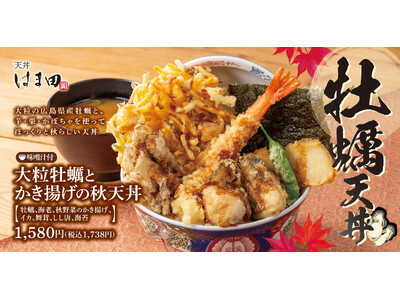 大粒牡蠣が主役!秋の味覚を贅沢に味わう「大粒牡蠣とかき揚げの秋天丼」天丼はま田に新登場