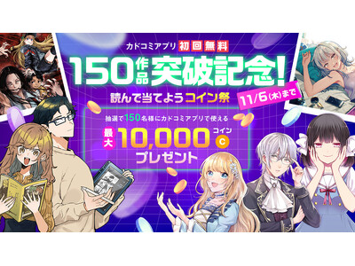 「カドコミアプリ」の「初回無料」対象作が150作品突破! 最大10,000コインが当たる記念キャンペーンを開催