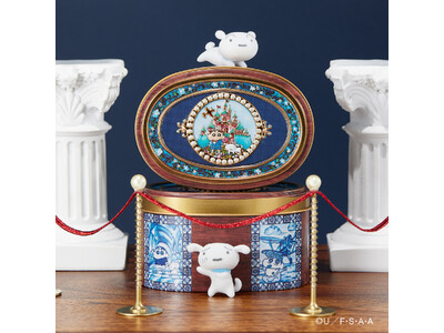 ヨーロッパ風タイル×宝石箱『クレヨンしんちゃん飛行機缶』が新登場!ふわふわ質感のシロのフロッキーフィギュアとステッカー付き。