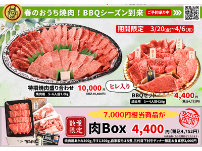 <愛知・大府>桜も開花!!「三代目下村牛『テイクアウトも春祭り』開催します!」春の行楽におすすめ"ヒレ入り"BBQセットおうち焼肉パーティーにもピッタリ 『特選焼肉盛り合わせ』 も!