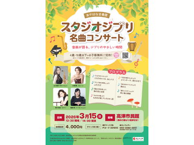 『スタジオジブリ 名曲コンサート』が2026年3月15日 (日)に高津市民館(神奈川県 川崎市高津区 溝口 141)にて開催されます。 チケットはカンフェティ(運営:ロングランプランニング株式...