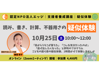 【読む・書くが苦手な子の特性を知る】40人に2~3人いる「ディスレクシア」啓発月間イベント。認定NPO法人エッジが、疑似体験/相談会/音声テスト体験会を10月25日・26日に実施します。