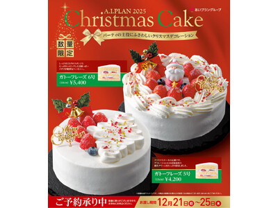 今年初登場の新作ケーキなど全6種や、家族で囲む特製ローストチキンも販売 札幌旭川でレストランを運営する株式会社あいプラン(本社:札幌市)は、2025年のクリスマスに向けて、自社レストラン4店舗...