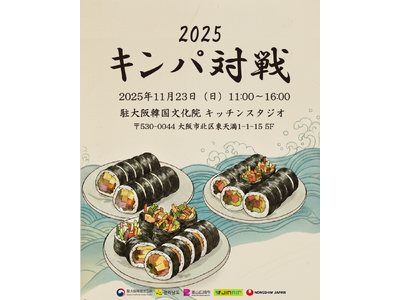 「2025キンパ対戦」 11月23日(日)大阪韓国文化院で開催 駐大阪韓国文化院(院長 金蕙穗)は、2025年11月23日(日)、韓国のソウルフード「キンパ」をテーマとした料理コンテスト「20...