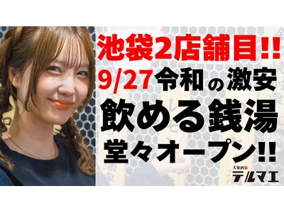 【格安居酒屋の革命児】9/27 令和の激安 "飲める銭湯"が東京都豊島区池袋駅東口に堂々オープン!