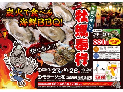 千葉県柏市に参上! 9月27日~ モラージュ柏で 開催決定!! 出張カキ小屋BBQ!! 期間限定開催《 宮城県産殻付き牡蠣が約1キロ880円!! 》