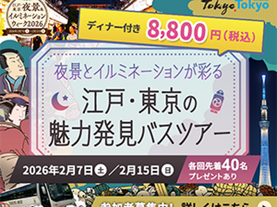 江戸の浮世絵に描かれた灯りと、現代の東京夜景が一度に楽しめる「夜景とイルミネーションが彩る 江戸・東京の魅力発見バスツアー」を2026年2月開催!