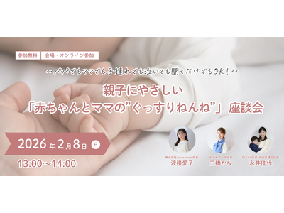 【2/8東京】子どもの睡眠専門家×産後ケアのスペシャリストによる座談会開催 夜泣きや育児で悩む親子がぐっすり眠れる環境をサポートしたい