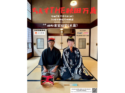 秋田県住みます芸人のちぇす(長谷川瞬、若松弘樹)が、2025年11月9日(日)旧松倉家住宅(秋田市)にて、秋田万歳を披露するお笑いライブ『ちぇすTHE秋田万歳』を開催します。 秋田万歳は、30...