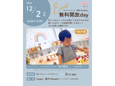 hoppe「親子のibasho」であそぼう! 特定非営利活動法人ほっぺ(代表:大森奈津子兵庫県三木市)は、2025年12月2日(火)、乳幼児親子のプレイスペースhoppe「親子のibasho」...
