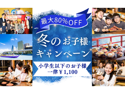 小学生以下のお子様が一律1,100円!最大80%4,400円OFFの破格キャンペーンを2026年1月4日(日)~3月13日(金)に開催! 冬のお子様キャンペーン!小学生以下のお子様が一律1,1...