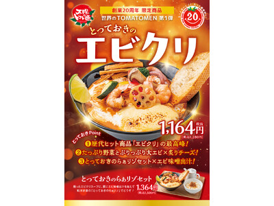 太陽のトマト麺創業20周年記念!歴代最大ヒット(※)商品"エビクリ"の最高峰、登場!