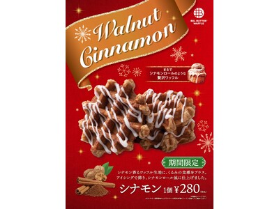 【BEL BUTTER WAFFLEベルバターワッフル】まるでシナモンロールのような贅沢ワッフル!発酵バターとシナモンがコク深く香る、季節限定ワッフル「シナモン」が11月1日(土)発売
