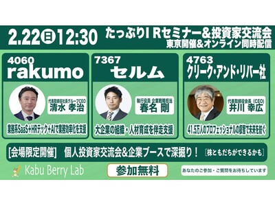 2/22(日)個人投資家向け会社説明会のお知らせ(東京・新橋)