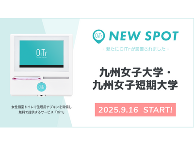 "自律処行"の精神に寄り添い、誰もが安心できる学びの環境づくりを、OiTrがそっとサポート 全国の商業施設や交通機関、公共施設、オフィス、学校などの女性個室トイレに、生理用ナプキンを常備無料提...
