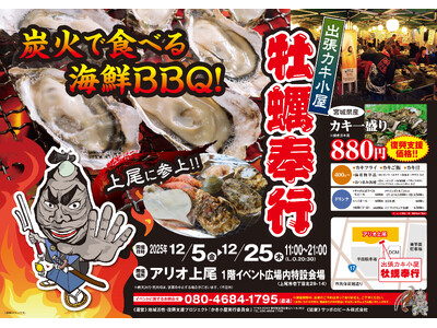 埼玉県上尾市に「出張カキ小屋」参上! 12月5日~ アリオ上尾店で期間限定開催!《 宮城県産殻付き牡蠣が一盛り880円!! 》