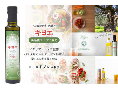 「ミシュラン星獲得レストラン」や「国際線ファーストクラス」採用の<キヨエ>ブランドから、新商品ギリシャ・オリーブオイル<キヨエ>第2弾が2025年冬に登場。こだわりのお店で発売。