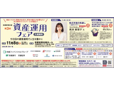 京都新聞では、ライフスタイルが多様化する中で、資産づくりに興味がある方、将来の備えが必要な方を対象とした「第3回資産運用フェア」を11月8日(土)に京都経済センター2階 京都産業会館ホールで開...