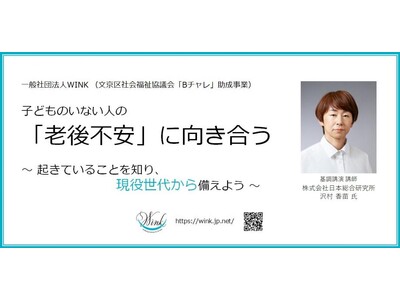 東京都の社会福祉法人文京区社会福祉協議会の提案公募型協働事業に採択 このたび、一般社団法人WINK(東京都新宿区白銀町)の提案「子どものいない人のためのプレ終活 実態把握セミナー&ワー...
