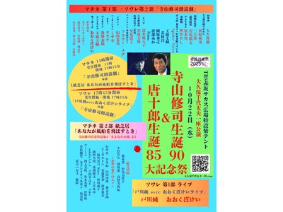 【赤坂芸術祭2025】赤坂サカス広場紫テント10/22(水) 大久保千代太夫一座『寺山修司生誕90&唐十郎生誕85 大記念祭』開催 カンフェティでチケット発売中!