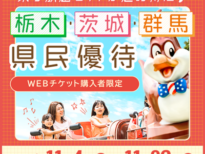 ~栃木茨城群馬県集まれ!優待価格でお得に楽しもう~ 藤和那須リゾート株式会社(栃木県那須町/代表取締役社長:岩本 大二郎)が運営する"那須ハイランドパーク"では、11月4日(火)~11月30日...