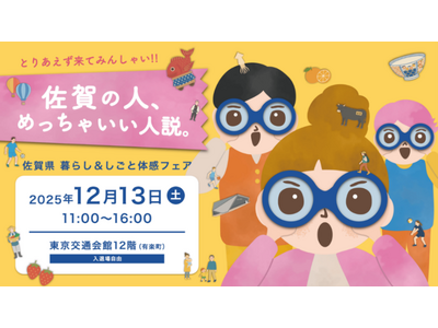 全国の自治体と連携して移住を支援する「公益社団法人ふるさと回帰移住交流推進機構」は、佐賀県との共催で2025年12月13日(土)に「佐賀さいこう!暮らし&しごと体感フェア ~佐賀の人、...