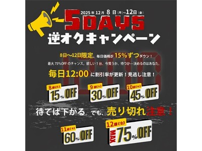 リユースPCのリングロー、毎日値下がり、でも早い者勝ち!最大75%OFFのスリル体験「買うなら今か、最終日か?」5DAYS逆オークションキャンペーン開催!!