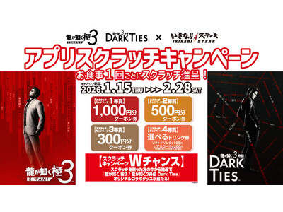『龍が如く 極3 / 龍が如く3外伝 Dark Ties』と「いきなり!ステーキ」がコラボ!抽選で割引クーポンやオリジナルコラボグッズが当たる