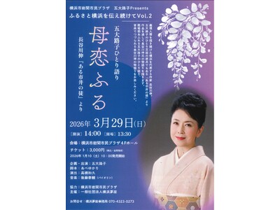 五大路子Presents ふるさと横浜を伝え続けてVol.2 義理人情を描き続けた横浜を代表する作家 長谷川伸。 五大路子のひとり芝居の原点でもある「ある市井の徒」より作品を通して長谷川伸氏の...