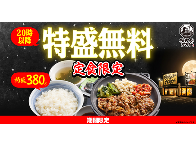 【焼きたてのかるび】夜だけ特別!20時以降「定食ごはん特盛無料キャンペーン」を開催