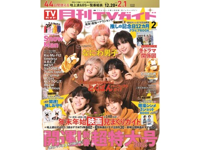 「月刊TVガイド 新春超特大号」のテーマは"開運"! 表紙には、午年生まれが2人いる、なにわ男子が登場。運気アップ級の豪華3大【開運】付録&年末年始のエンタメ情報を丸ごとお届け!!