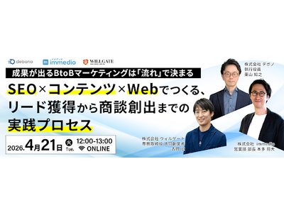 株式会社immedio(本社:東京都渋谷区、代表取締役:浜田 英揮)は、2026年4月21日(火)、株式会社ウィルゲート、株式会社デボノと共に、リード獲得から商談創出までを一気通貫で設計するオ...