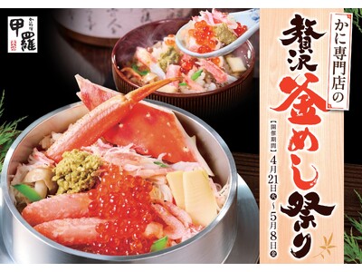 たらばやずわいを使用した多彩なかに釜めしが登場!GWの家族団らんにもおすすめ 株式会社甲羅(本社:愛知県豊橋市、代表取締役社長:沼澤 裕)が全国約40店舗で展開するかに料理専門店「甲羅本店」で...