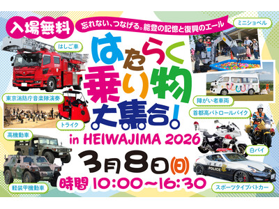 ~忘れない、つなげる。能登の記憶と復興へのエール~「はたらく乗り物大集合!in HEIWAJIMA 2026」を2026年3月8日(日)に開催いたします。