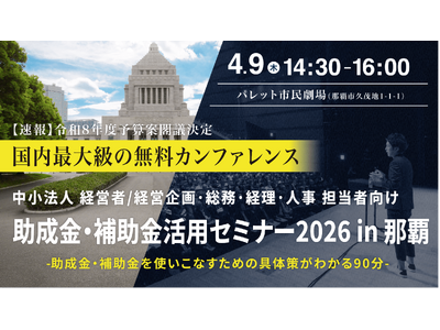 一般社団法人日本中小企業経営者協会(東京都千代田区、代表理事 石黒哲明) は、2026年4月9日(木)14:30~16:00にパレット市民劇場(沖縄県那覇市)にて、「助成金補助金活用セミナー2...