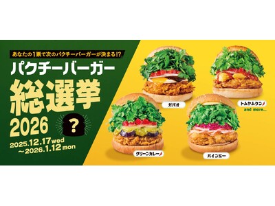 投票期間:2025年12月17日(水)~2026年1月12日(月) パクチーバーガー総選挙イメージ コロワイドグループの株式会社フレッシュネス(代表取締役社長:齋藤 健太朗/本社:神奈川県横浜...