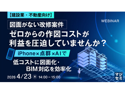 マジセミ株式会社は「【建設業不動産向け】図面がない改修案件、ゼロからの作図コストが利益を圧迫していませんか?」というテーマのウェビナーを開催します。 詳細参加申込はこちら 図面がない改修案件が...